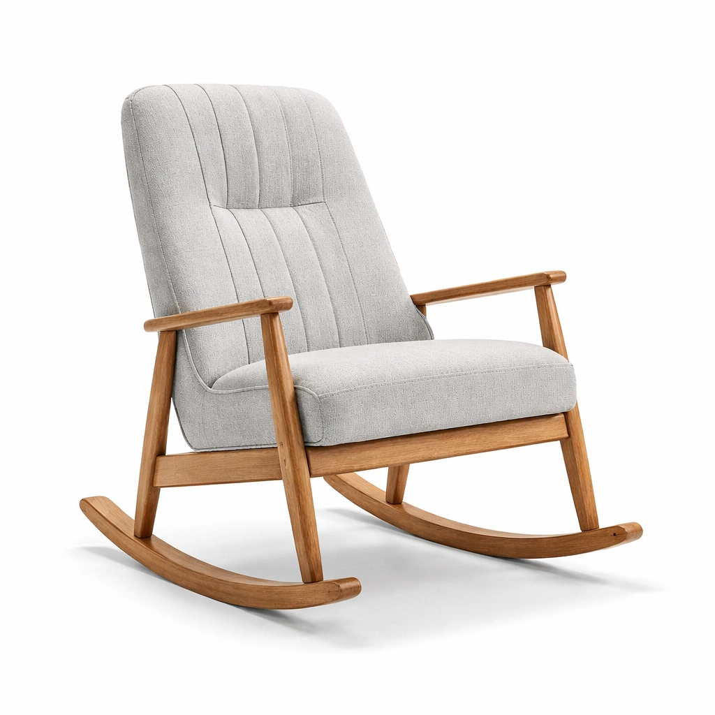 Sedia a dondolo in legno e tessuto grigio