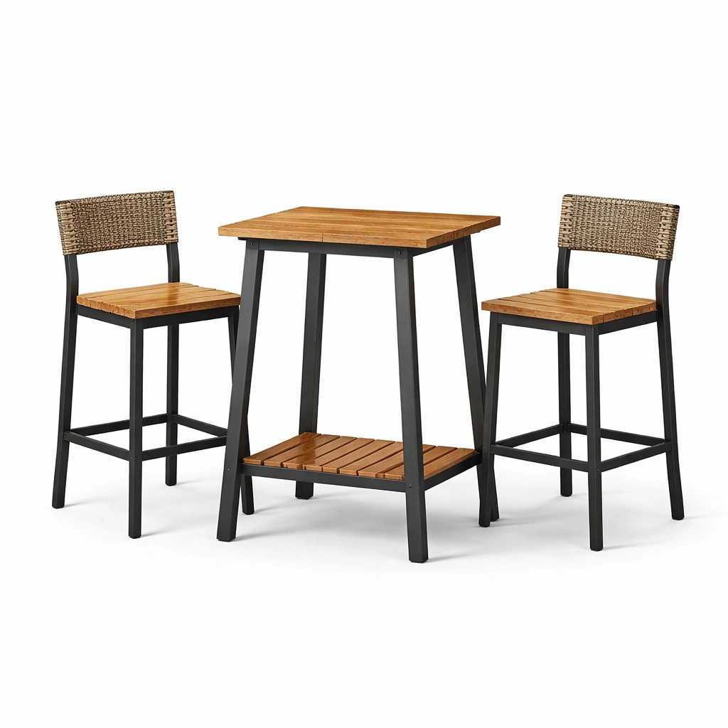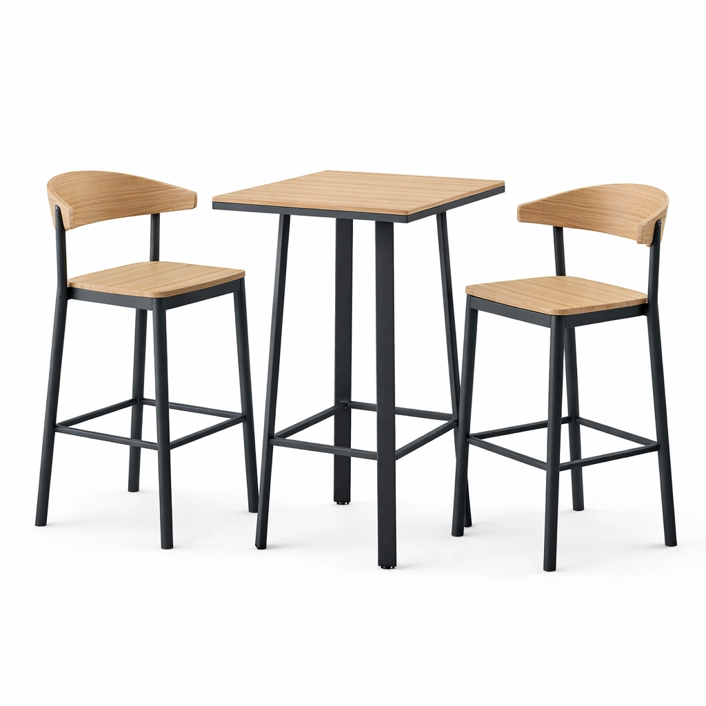 Set bar tavolo alto in legno mdf e sedie in metallo nero rovere