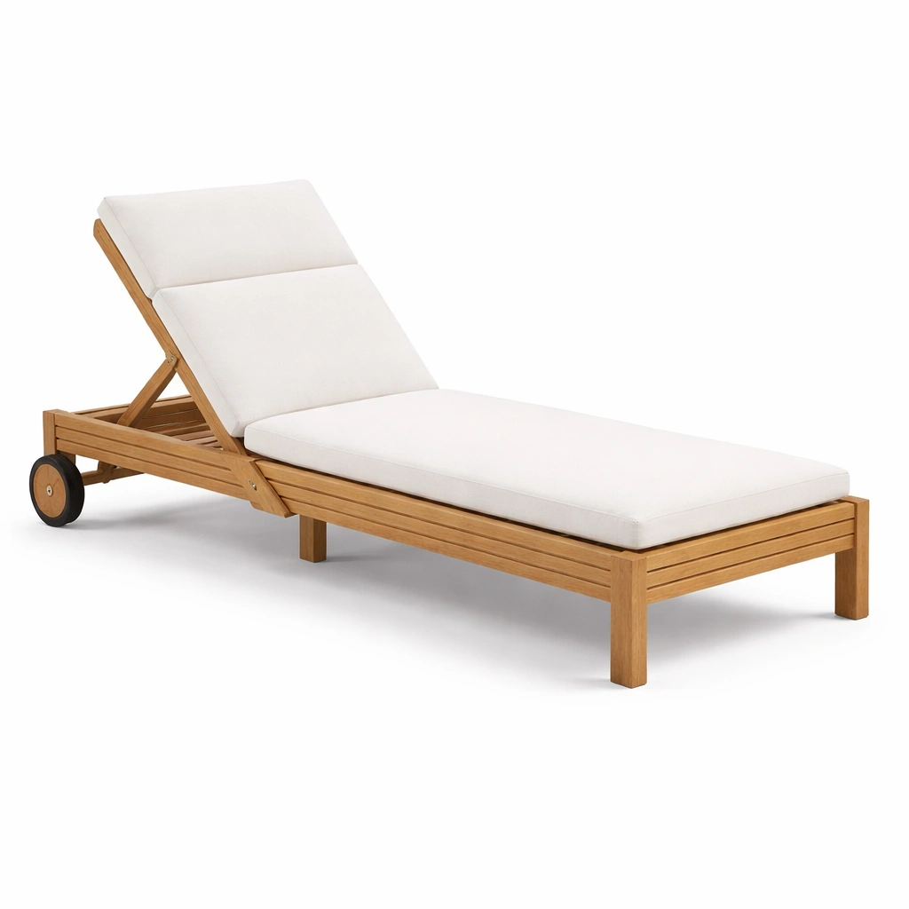 Sdraio in legno teak con cuscini in poliestere