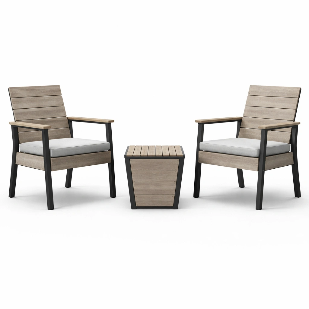 Sedie: legno di acacia, alluminio verniciato a polvere, cuscini in tessuto di poliestere